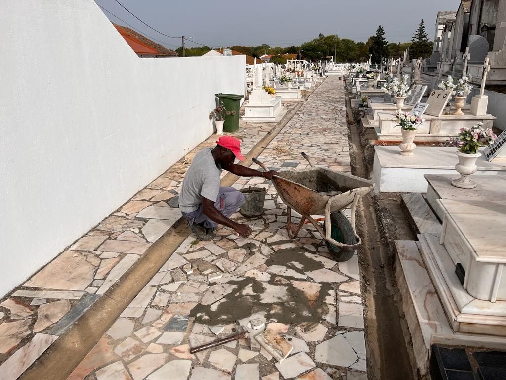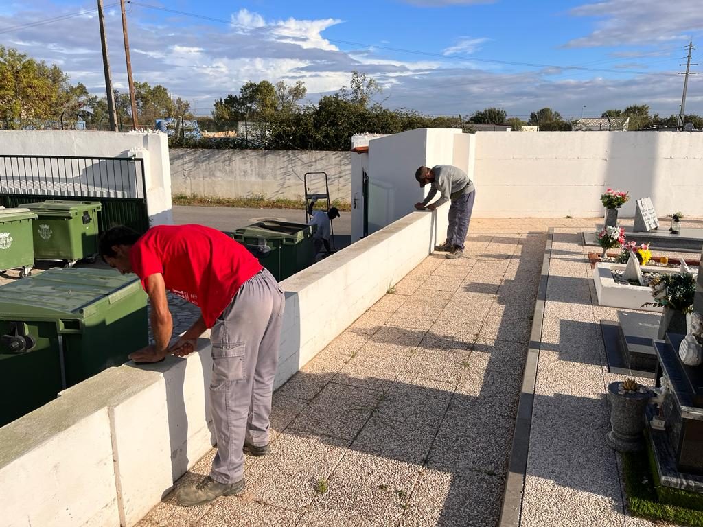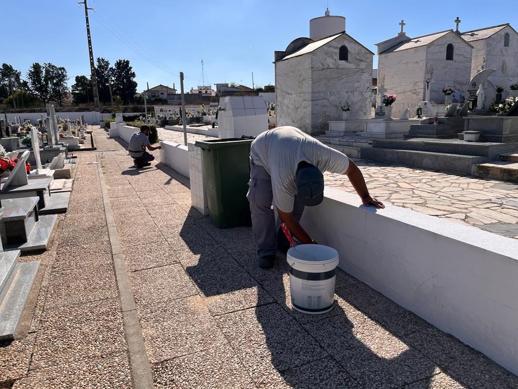A Junta de Freguesia de Benavente iniciou os trabalhos de pintura de edifícios, muros e fontes nos Cemitérios de Benavente e Foros da Charneca.