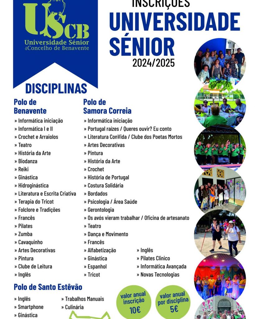 ABERTAS AS INSCRIÇÕES PARA O ANO LETIVO 2024/2025 – UNIVERSIDADE SÉNIOR DO CONCELHO DE BENAVENTE